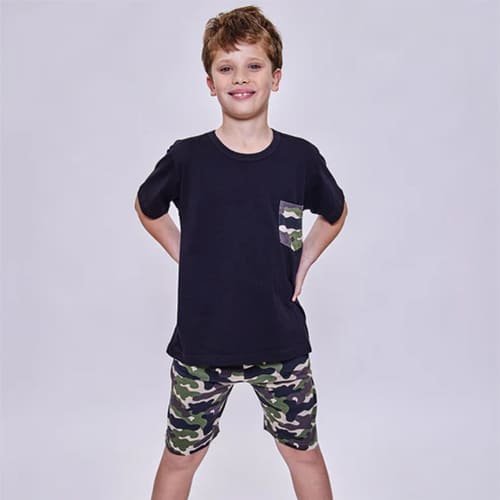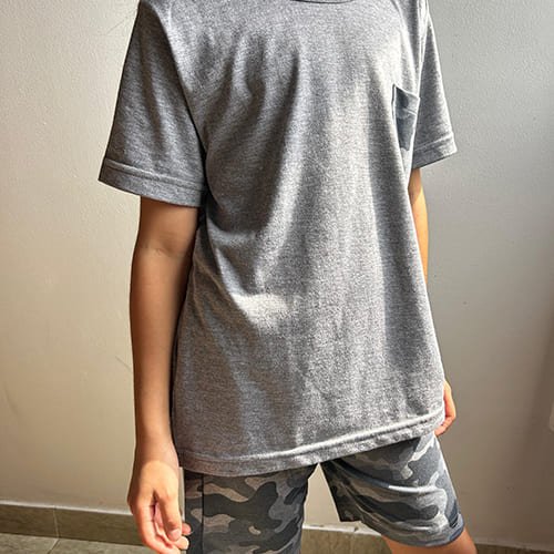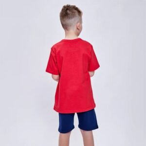 Pijama de algodón unisex, escote redondo manga corta. Pantalón estampado. Tejido suave, resistente y duradero. Prenda suelta que permite a la piel respirar. Los grises pueden contener poliester.